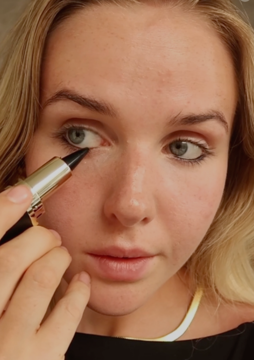 3. Apply the eyeliner: Gently pull your eyelid taut and draw small, short strokes along the lash line. Connect them to form a precise line. Holding the eyeliner slightly under the eyes helps keep the tip intact longer.