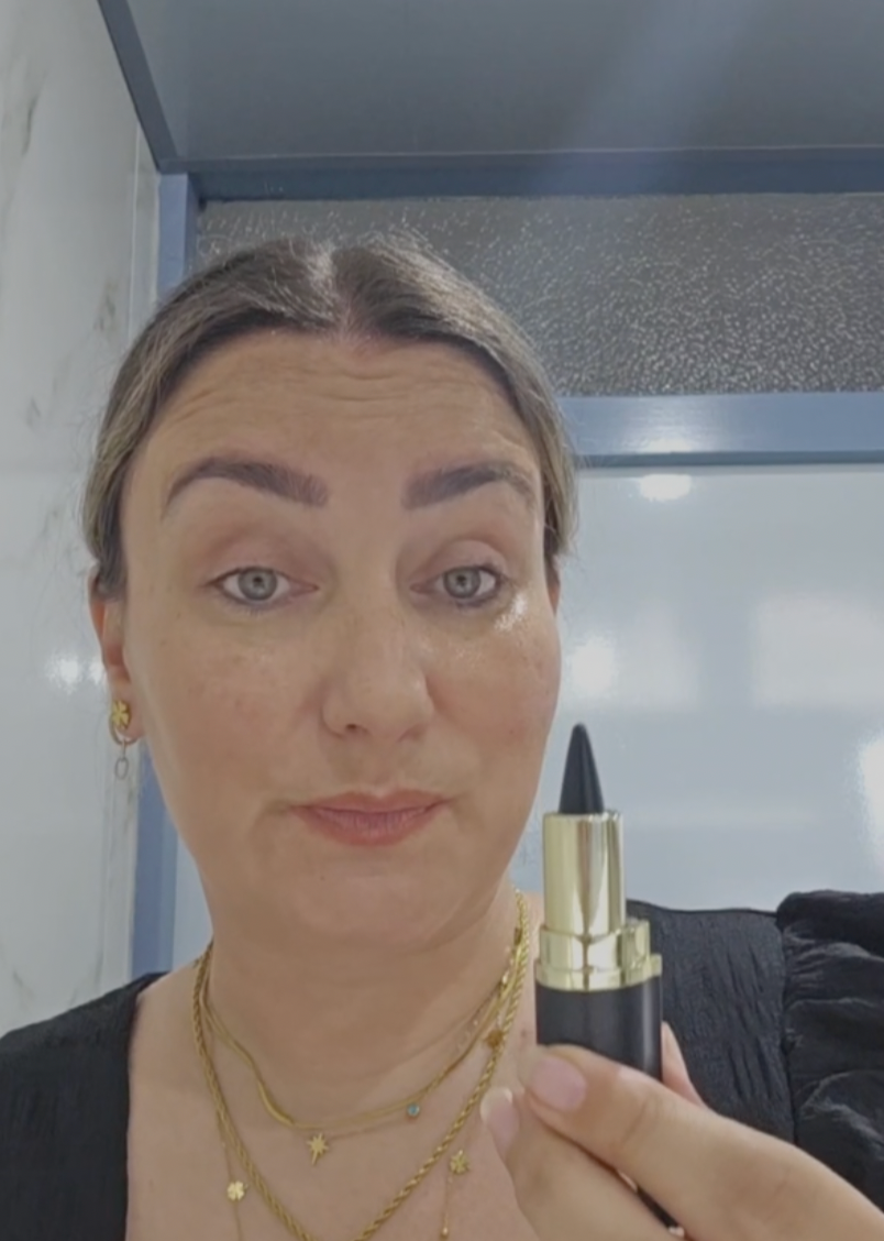 I have watery eyes, my right eye in particular, and I really love a kohl line. That didn’t work with a regular kohl pencil, but it does with Julie’s—so I’m very happy with it.